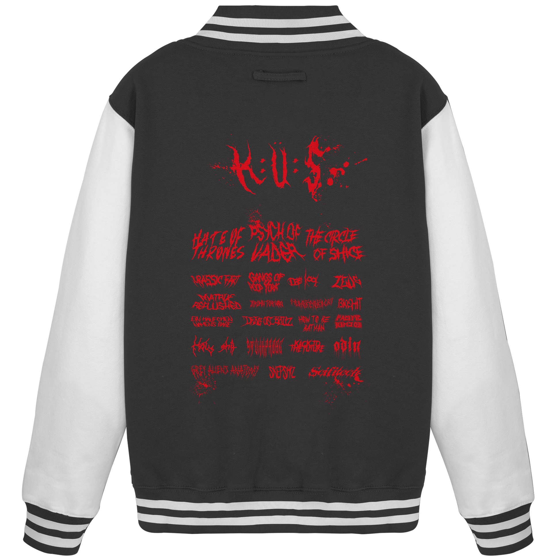 - Ärmel, Seitentaschen und Druckknöpfe in Kontrastfarbe